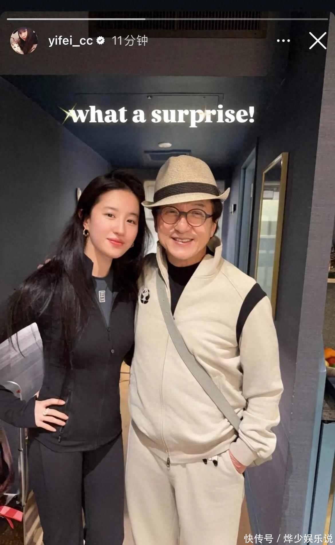 那天在机场,成龙和刘亦菲偶然遇见,没有提前安排,也没有人打扰,就是走着走着,成龙主动叫住刘亦菲,两人轻轻拥抱一下,一起拍了张照片,后来刘亦菲把这张照片发到Instagram上,照片里成龙穿着熊猫图案的T恤,戴着草帽,背着双肩包,整个人显得很放松,刘亦菲则是素颜状态,身穿运动装,手上戴着一枚钻戒,旁边放着LV行李箱,即使不说话也透出自然随性的气质。